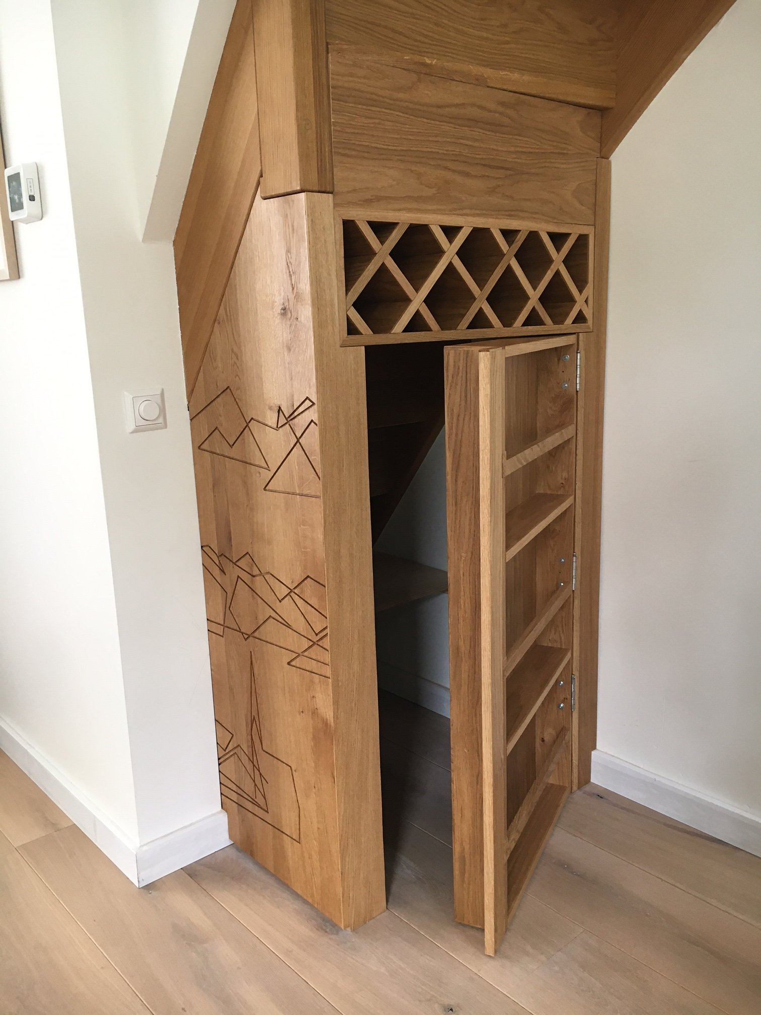 BriefDesigning understairs cabinet for an existing solid oak staircase. The client wanted a very personal design that would be a statement piece for the small home. Yet very functional with varying storage option and detailing.